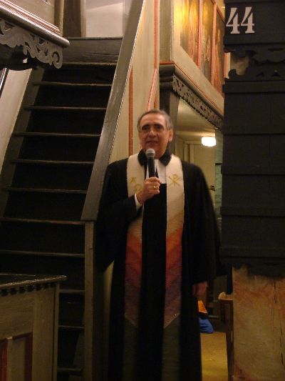 ... und so wanderte Pfarrer Norbert Kirr mit Begeisterung ins Kirchenschiff, um seine Gemeinde einzuladen, an allen zukünftigen Gottesdiensten so zahlreich zu erscheinen.